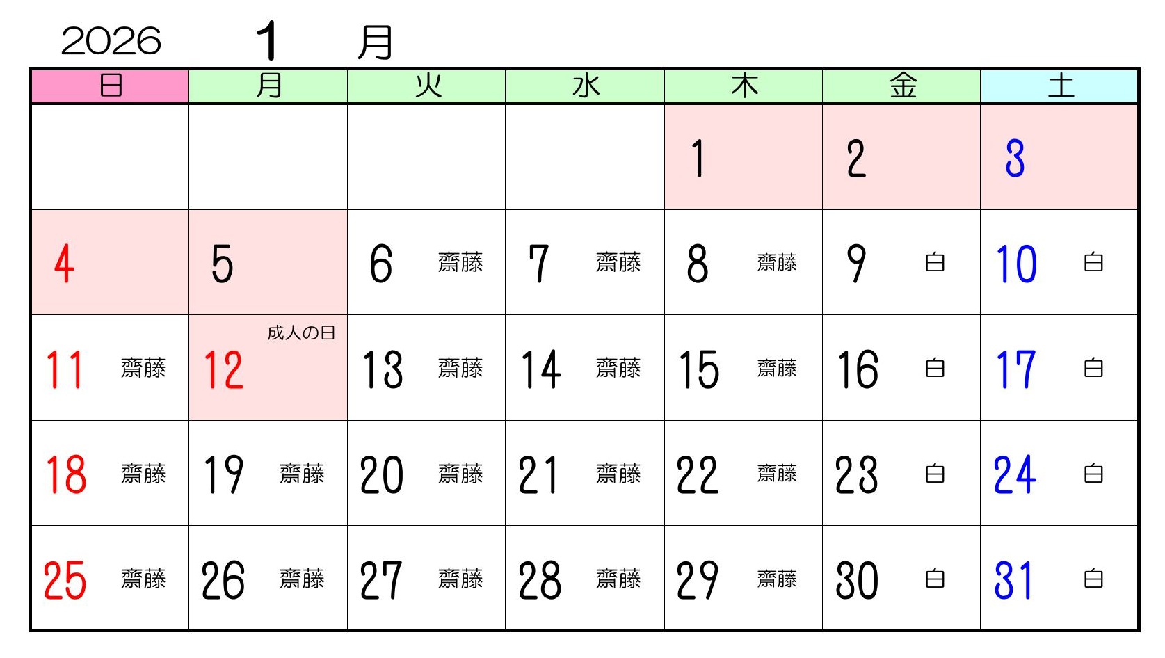 1月の休診日、ならびに外来担当となります。ご確認くださいませ。【 PDFファイルで確認する 】下記の「くわしく見る」からも、PDFファイルでもご確認いただけます。どうぞよろしくお願いいたします